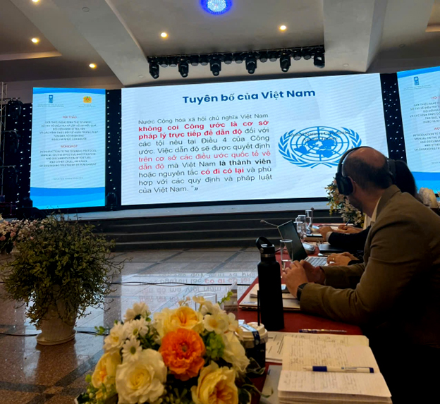 Hội thảo thu hút hơn 100 đại biểu đại diện các tổ chức quốc tế cùng lãnh đạo và chuyên gia đến từ Bộ Ngoại giao, Bộ Công an, Viện Kiểm sát nhân dân Trung ương và địa phương tham dự.